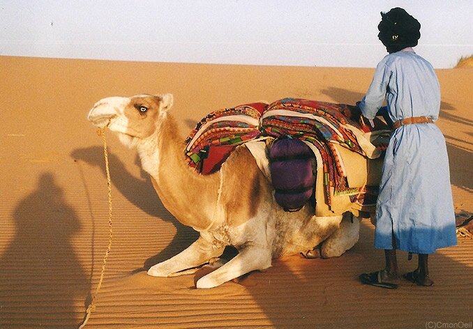 Elle, c'est Ouarda, ma dromadaire randonneuse aux yeux bleus pour 15 jours en autonomie dans le Sahara Mauritanien. Ouarda, comme dans le livre "Le seigneur des chevaux" de Christine de Rivoyre et Alexandre Kalda. En arabe, Ouarda, c'est la rose.