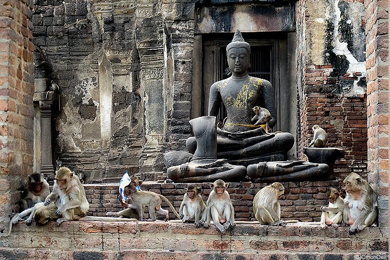 A Lopburi, ils vivent en liberté dans la ville et ont particulièrement investi le temple Phra Prang Sam Yod.